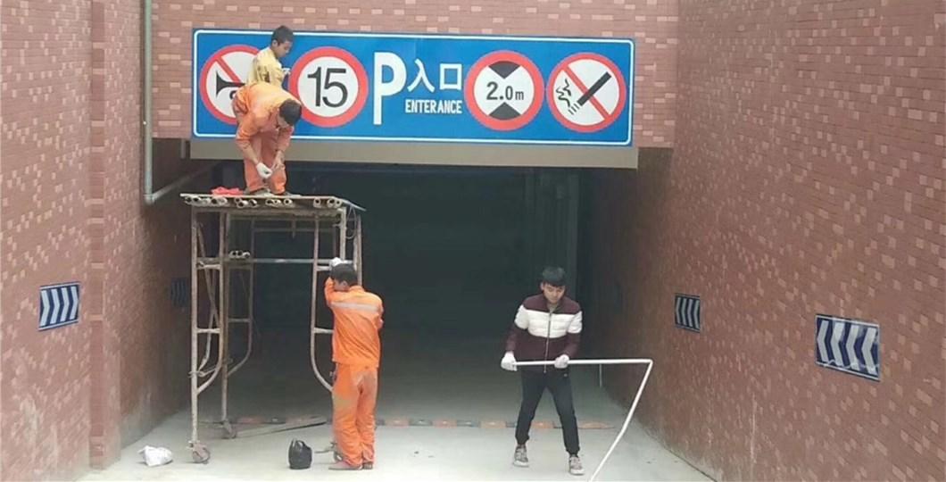 凱達廣場停車場龍門牌安裝,停車場標牌,定位器找深圳市創(chuàng)安全交通標牌廠家,生產制造安裝施工一站式服務。